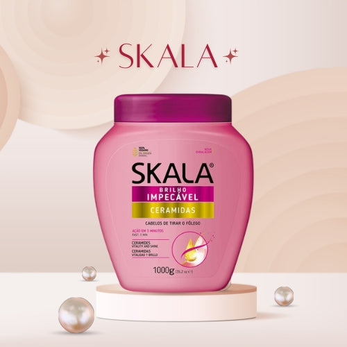 A linha Skala Ceramidas possui em sua fórmula um selante de 3ª geração que sela as cutículas e ajuda a reforçar a estrutura capilar devolvendo o brilho e a vitalidade aos fios.