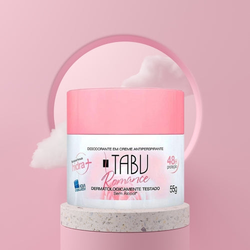 O Creme Desodorante Antitranspirante Tabu possui uma fórmula especialmente desenvolvida com glicerina vegetal e óleo de girassol, que promovem a hidratação das axilas por até 24 horas.