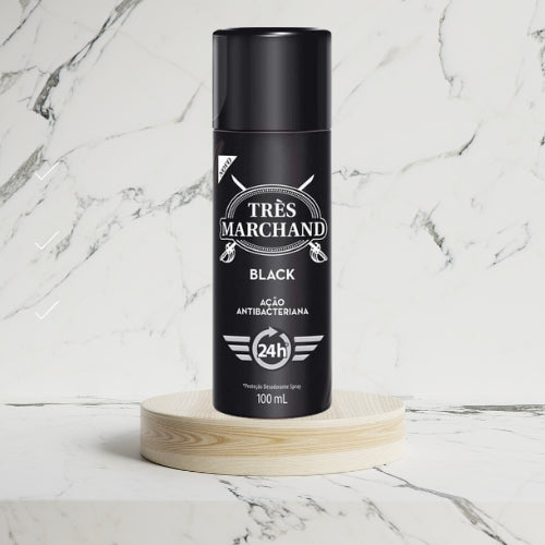 O Desodorante Spray Tres Marchand Black proporciona um toque de sensualidade, ideal para o dia e principalmente à noite.